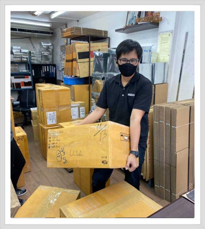 * เรามีประสบการณ์เชี่ยวชาญในการแพ็ค รู้เทคนิควิธีแพ็คให้เหมาะกับแต่ละสินค้า โดย เลือกใช้กล่องที่ประหยัดงบสุดของลูกค้า แพ็คและปิดเทปให้กล่องอยู่ในสภาพแข็งแรง แน่นหนา พร้อมส่งออกได้อย่างปลอดภัย